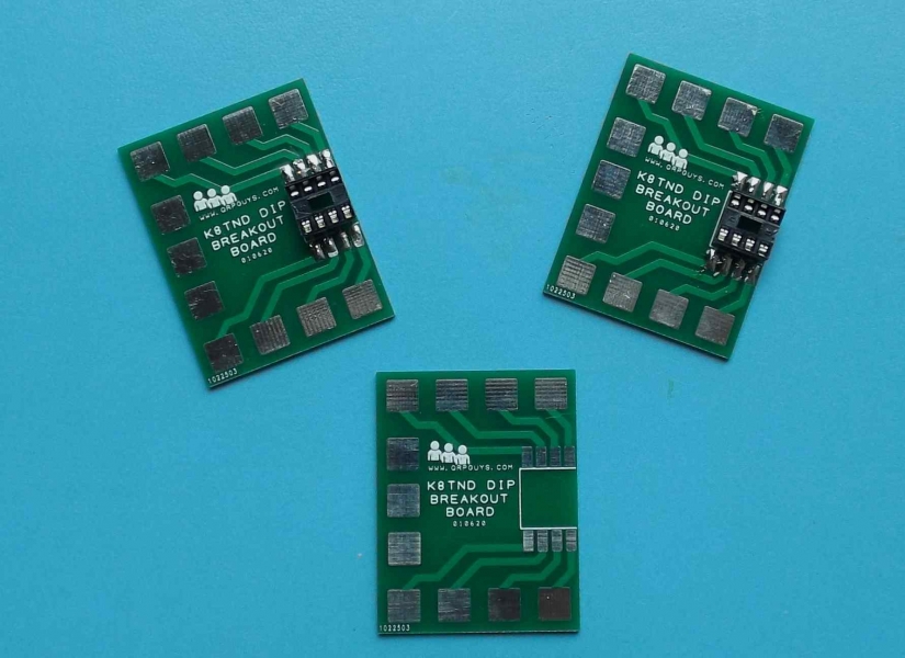 There are tens of thousands of radio and electronics hobbyists across the country. Many of them use the Manhattan construction method to bring their ideas to fruition. Many of these hobbyists make their own copper solder pads, but the big hangup is trying to break out an integrated circuit to where you can easily solder to the leads. Not only is this messy and inconvenient but also very time-consuming. The K8TND DIP Breakout Board solves this problem. This ingenious board will break out 8, 14 and 16 pin integrated circuits and also has 3 accessory pads for wiring or components. To break out 14 and 16 pin chips, two boards are used back to back. These are very good quality and reusable many times over. Order some of these handy little boards today and put the fun back in your hobby. We supply the board, you supply the sockets. Each board measures 1.83″ (46.5mm) x 1.42″ (36.0mm) and is .06″ (1.5mm) thk. FR4 material.